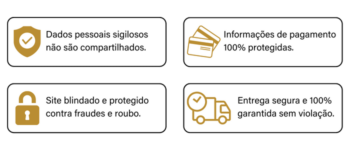 Este site é 100% protegido contra recursos de má intenção. Suas informações pessoais são totalmente sigilosas segundo a nossa Política de Privacidade e a entrega é garantida.